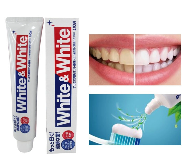 - Kem đánh răng white and white lion là loại kem đánh răng được sử dụng thông dụng ở Nhật, nhiều bọt với hương thơm mát dễ chịu, không tạo cảm giá ê buốt khi đánh răng.