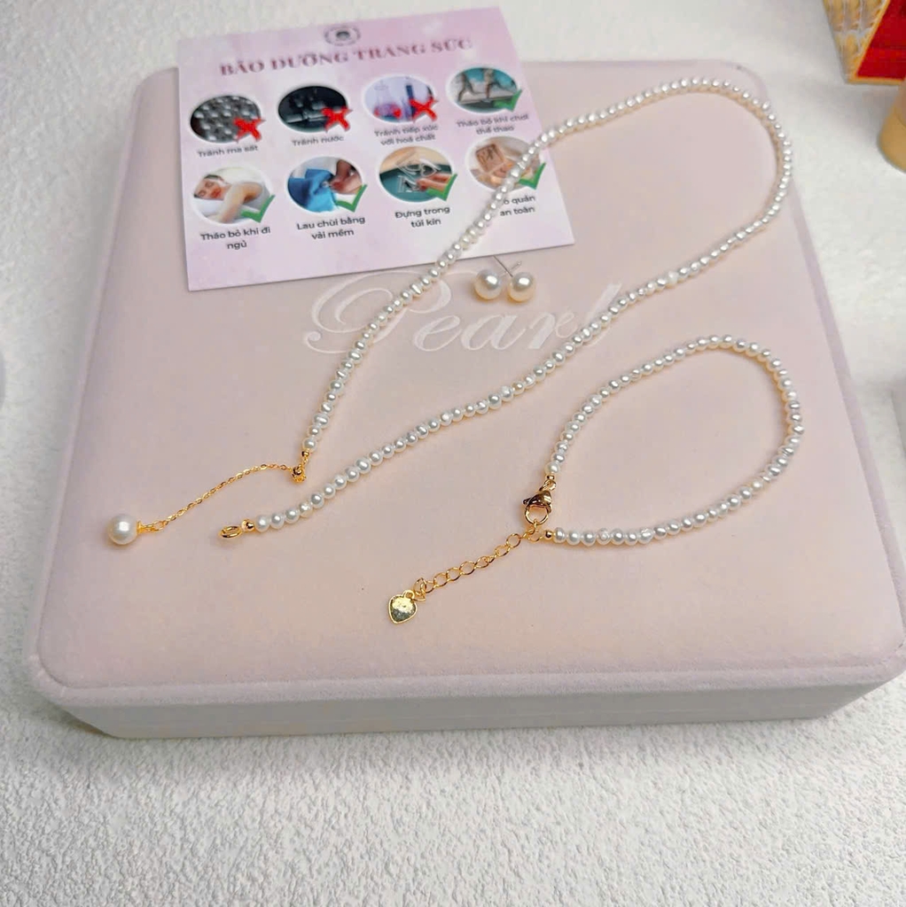Set vòng cổ+ bông tai ngọc trai baby 4 ly