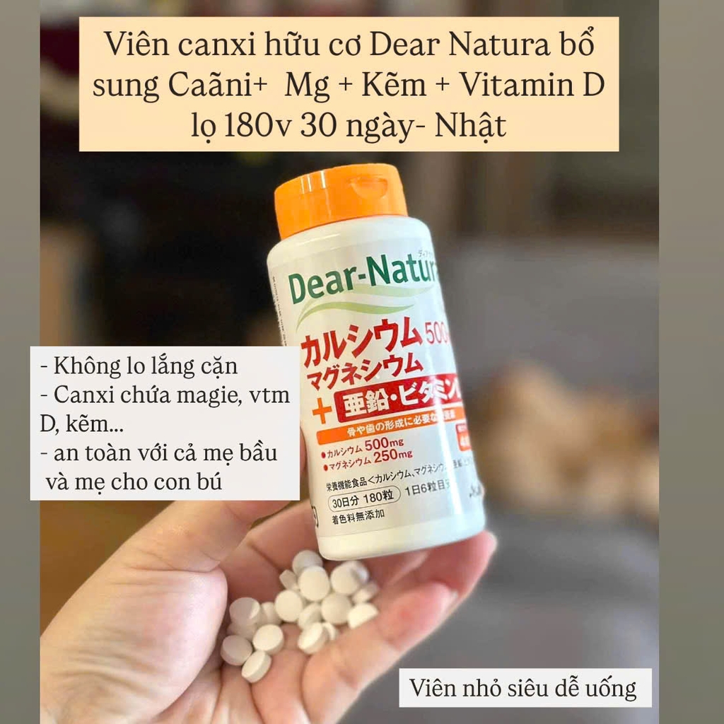 Viên uống canxi Dear Natura bổ sung 500mg canxi mỗi ngày, giúp cơ thể có đủ canxi giúp cho xương chắc khỏe, giúp bạn có thể vận động, chơi thể thao an toàn. Đặc biệt, viên uống còn kèm theo cả vitamin D hỗ trợ cơ thể hấp thu hiệu quả hàm lượng canxi để duy trì sức khỏe cho xương.